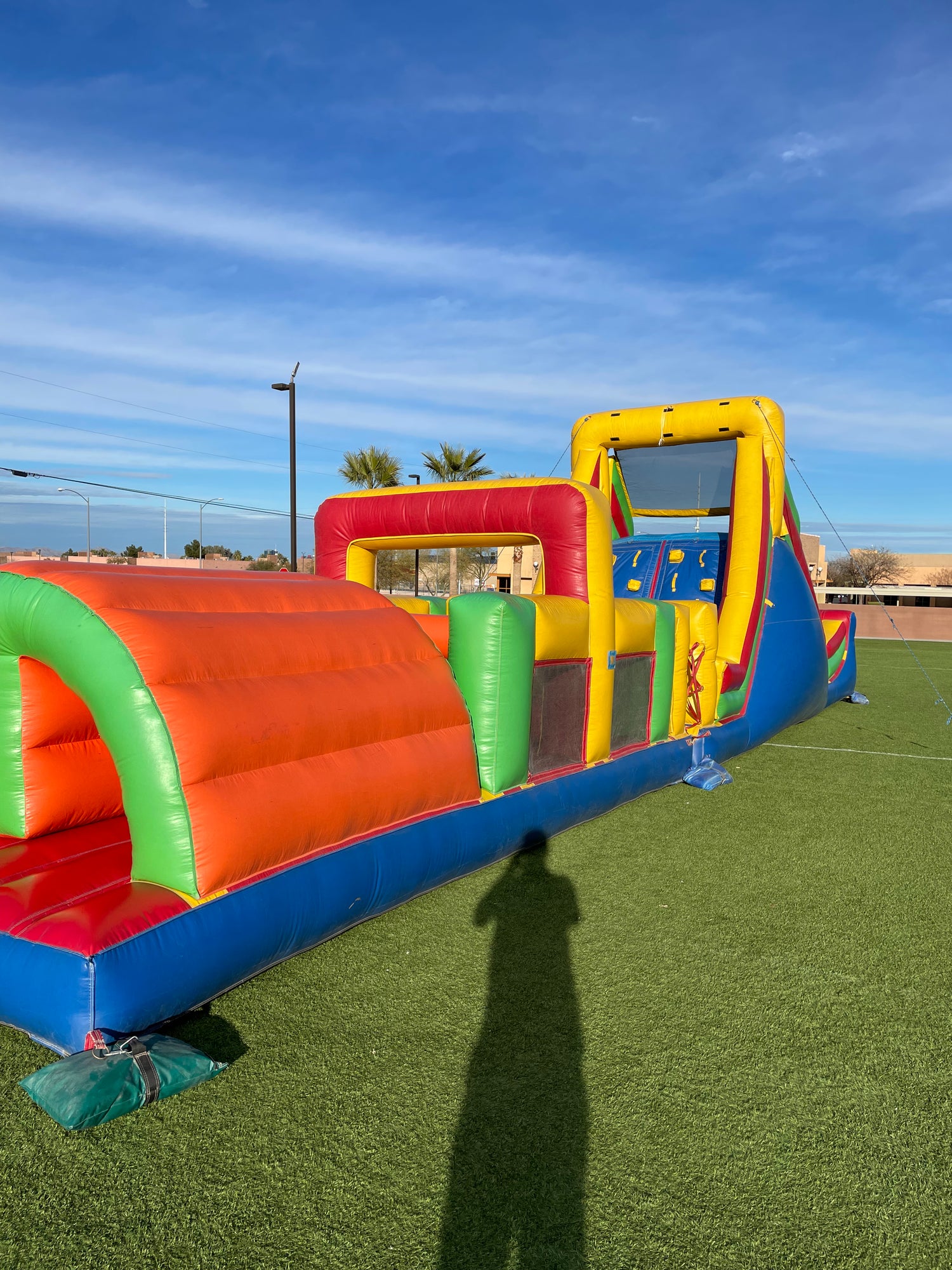 Kids will have a blast running through our 40ft inflatable obstacle course. They will start off running through tunnels, pushing through a wall of inflatable columns, climbing a wall, and sliding down the other side.