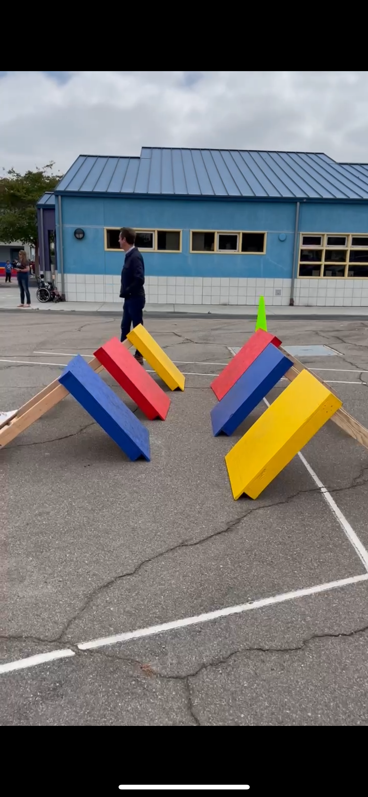 Just like on ninja warriors kids will run across these slanted steps to make it to the other end.