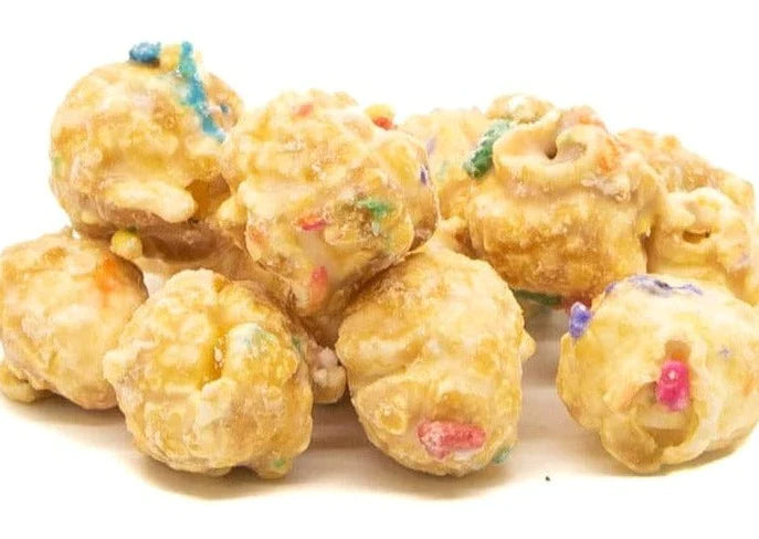 Popcorn, Sugar, Butter, White Chocolate (sugar, hydrogenated palm kernel oil, nonfat dry milk, whole milk powder, lecithin, vanilla) Corn Syrup, Canola Oil, Vanilla Flavor, Soy Lecithin, Sprinkles (Sugar, hydrogenated palm kernel oil, corn starch, sunflower lecithin, yellow #6, #5, Blue #1, Red #40, Red#3, maltodextrin, carnauba wax, vanilla, cellulose gum) Gum Acacia, salt